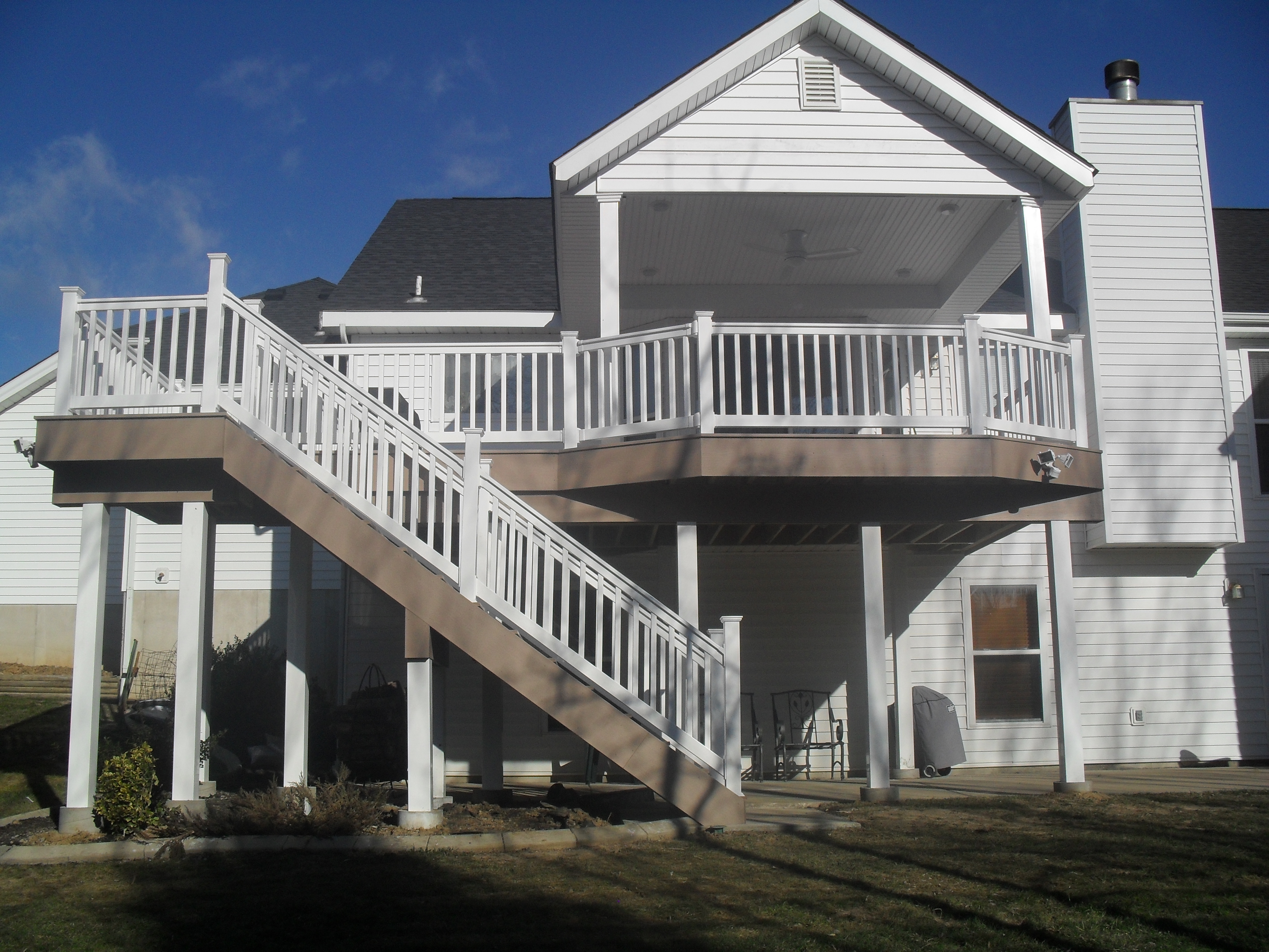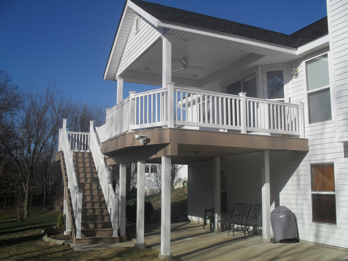 Cedar wood is well suited for decks and outdoor stair construction. Cedar is naturally decay-resistant, light in weight, easy to work with, and complements any architectural style. Cedar holds up well in the intense Missouri weather and although it will gray over time if not stained every couple of years, it is not prone to cracking and splintering like treated pine decks.